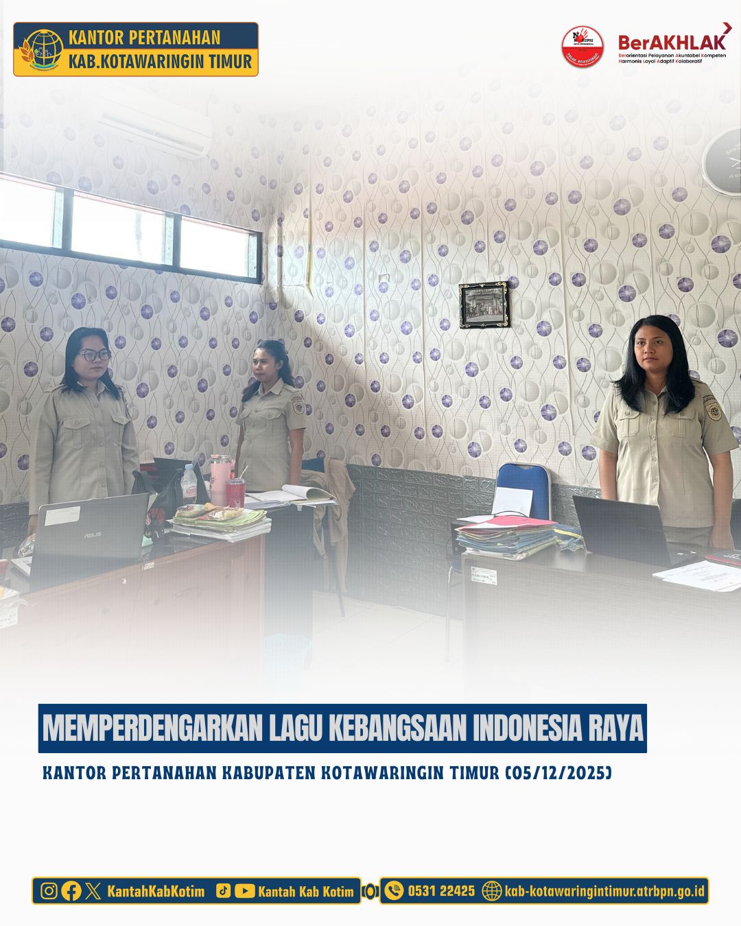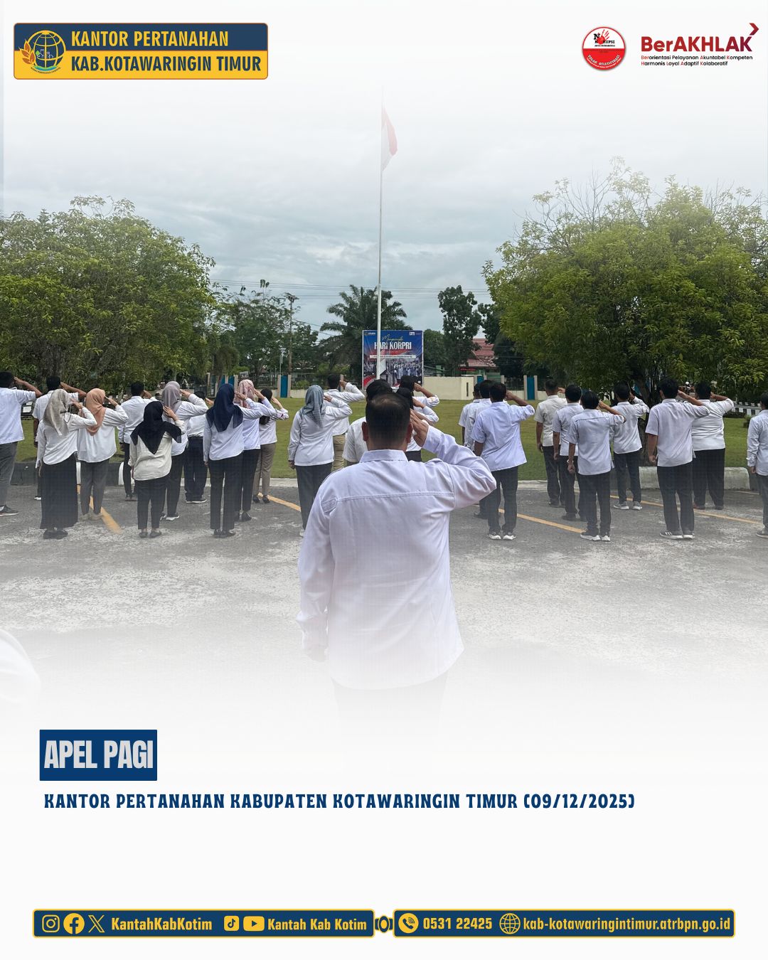 Halo #SobATRBPN Kotim,Selasa, 09 Desember 2025Telah dilaksanakan Apel Pagi Rutin yang dipimpin langsung oleh Bapak Mumin Haryanto, S.H selaku Kepala Kantor Pertanahan Kabupaten Kotawaringin Timur yang diikuti oleh seluruh pegawai Kantor Pertanahan […]