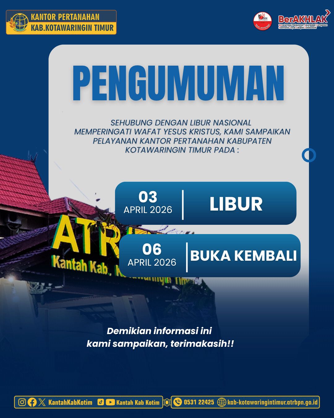 Halo #SobATRBPN, Kementerian Agraria dan Tata Ruang/Badan Pertanahan Nasional menyelenggarakan Halalbihalal 1 Syawal 1447 H pada Senin (30/03/2026) di Jakarta. Kegiatan ini menjadi momen silaturahmi bagi seluruh pegawai setelah perayaan Idulfitri […]