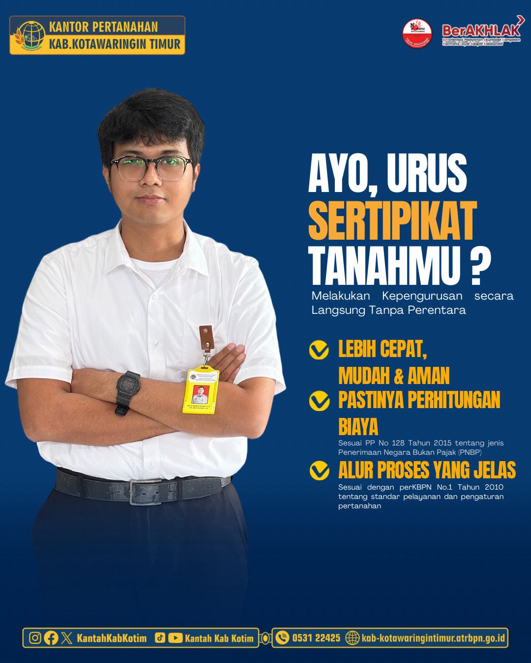 Mari dukung kami Kantor Pertanahan Kabupaten Kotawaringin Timur dalam memberikan pelayanan terbaik dan membangun Zona Integritas menuju Wilayah Bebas dari Korupsi (WBK) dan Wilayah Birokrasi Bersih Melayani (WBBM).