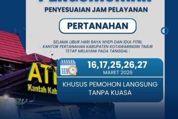 Mari dukung kami Kantor Pertanahan Kabupaten Kotawaringin Timur dalam memberikan pelayanan terbaik dan membangun Zona Integritas menuju Wilayah Bebas dari Korupsi (WBK) dan Wilayah Birokrasi Bersih Melayani (WBBM).