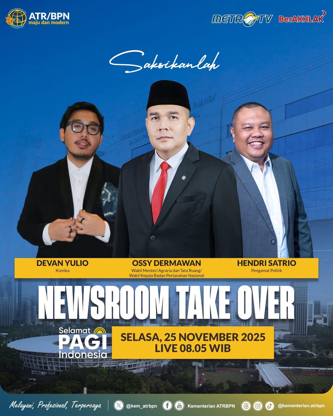 Wakil Menteri Agraria dan Tata Ruang/Wakil Kepala Badan Pertanahan Nasional (Wamen ATR/Waka BPN), Ossy Dermawan, tampil dalam program Newsroom Take Over di Metro TV, Selasa (25/11/2025). Dalam dialog santai namun […]
