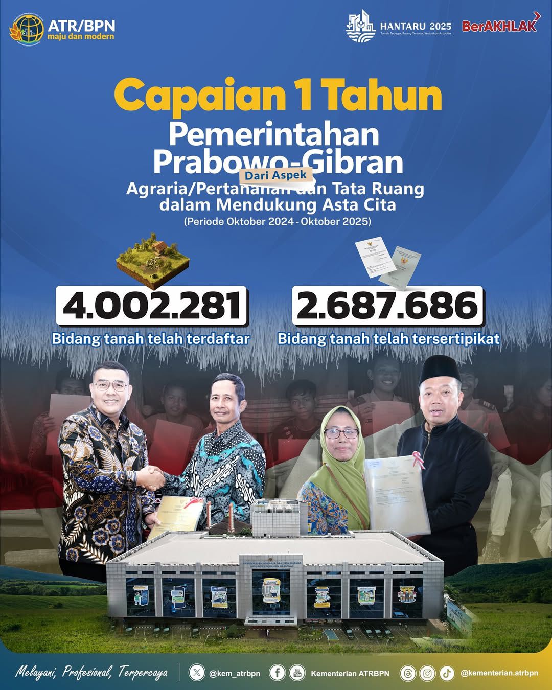 Halo #SobATRBPN, setahun kepemimpinan Presiden RI, Prabowo Subianto dan Wakil Presiden RI, Gibran Rakabuming bersama Kabinet Merah Putih terus mencatatkan hasil positif. Nah, Kementerian ATR/BPN sebagai leading sector pertanahan dan tata […]