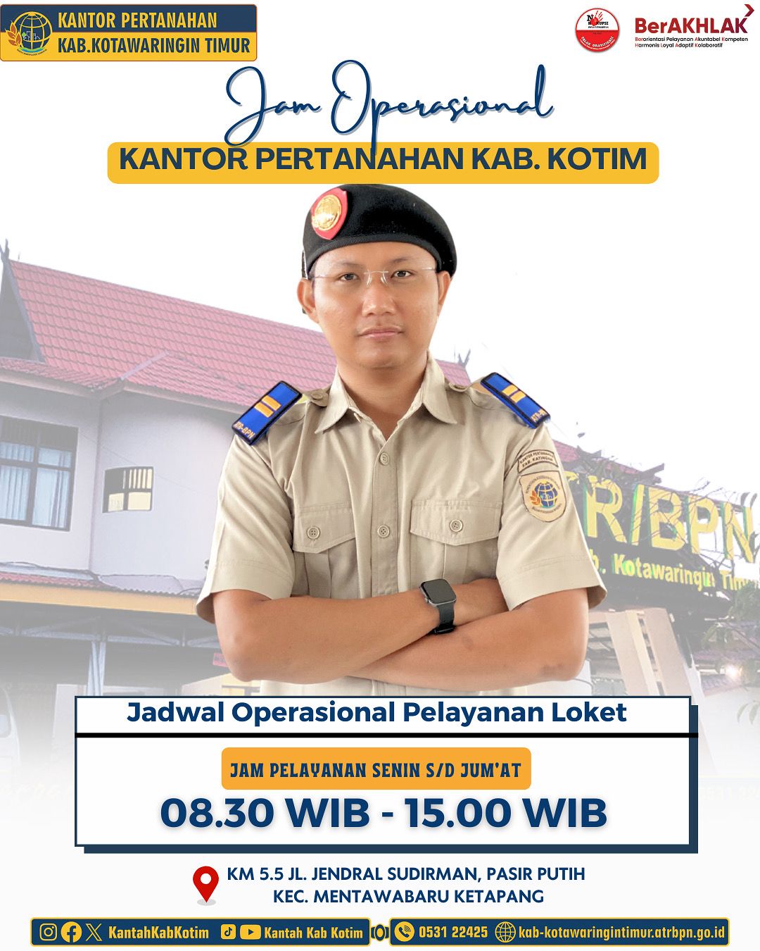 Jam operasional loket pelayanan Kantor Pertanahan Kabupaten Kotawaringin Timur: