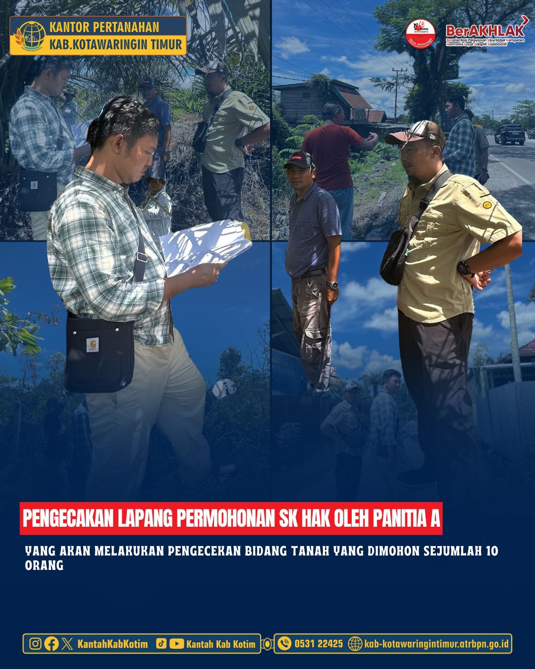 Kantor Pertanahan Kabupaten Kotawaringin Timur bahwa akan dilakukan pengecakan lapang terhadap permohonan SK Hak oleh Panitia A