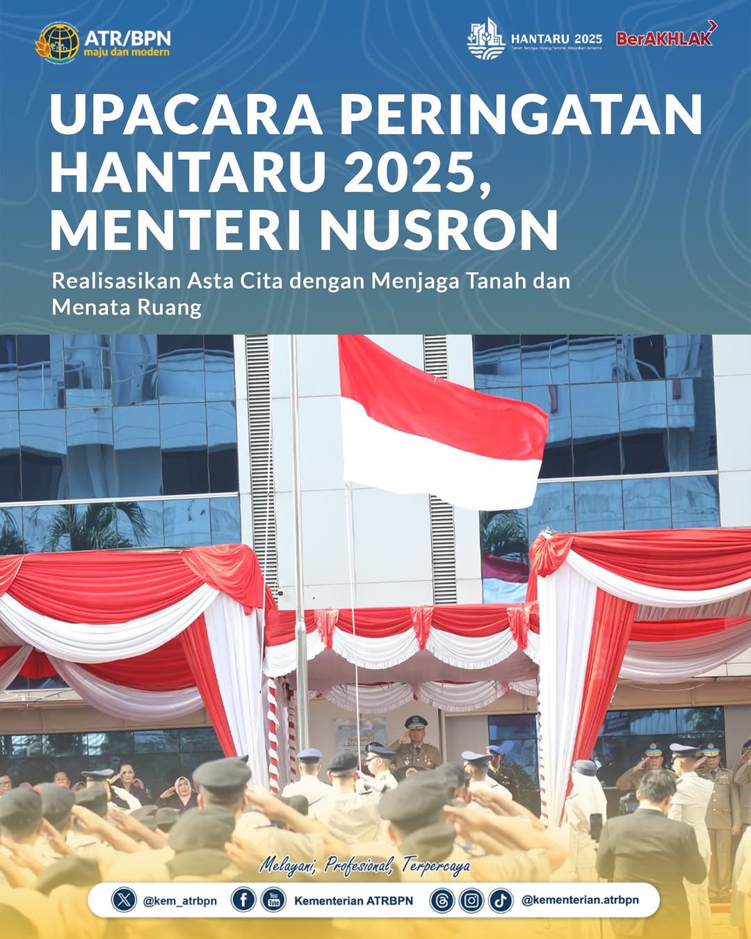 https://www.atrbpn.go.id/berita/upacara-peringatan-hantaru-2025-menteri-nusron-realisasikan-asta-cita-dengan-menjaga-tanah-dan-menata-ruang