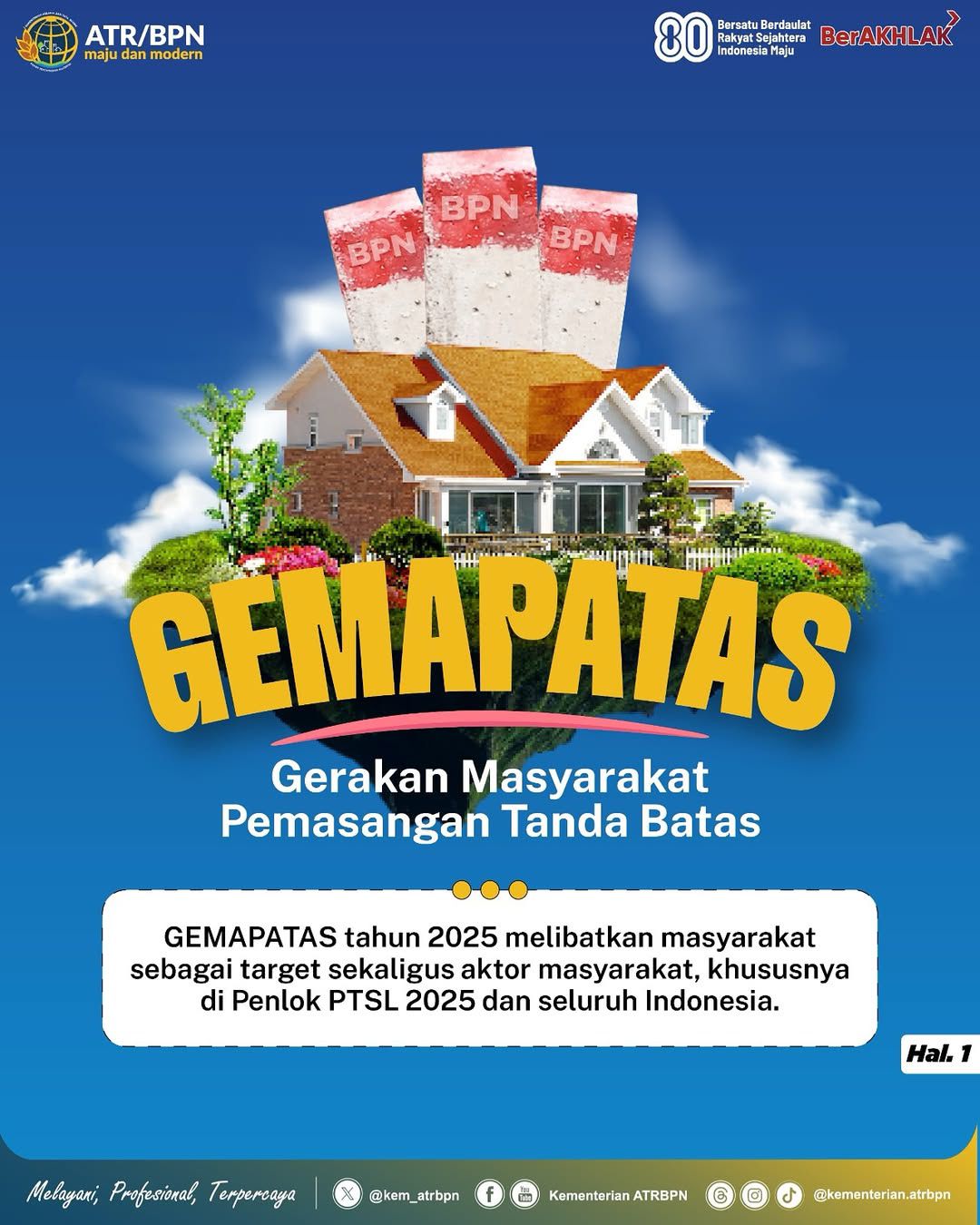 Halo #SobATRBPN, Kementerian ATR/BPN terus berupaya mempercepat program Pendaftaran Tanah Sistematis Lengkap (PTSL) Tahun 2025 untuk mewujudkan Indonesia Lengkap.