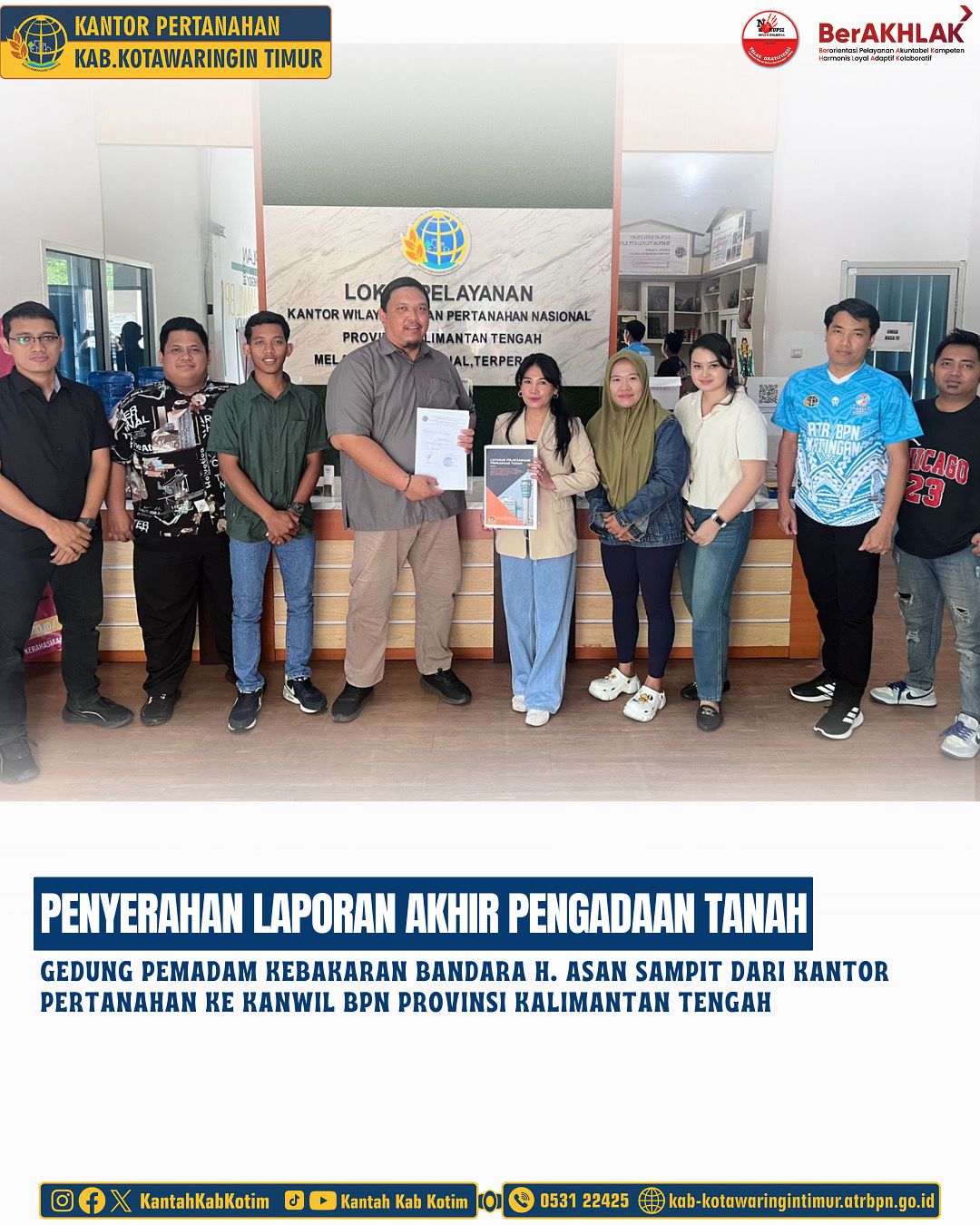 Penyerahan laporan akhir pengadaan tanah gedung pemadam kebakaran bandara H. Asan sampit dari kantor pertanahan ke kanwil BPN Provinsi Kalimantan Tengah