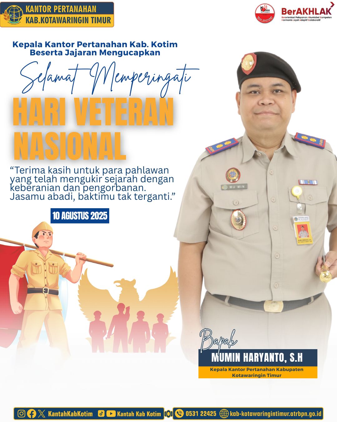 Segenap jajaran Kantor Pertanahan Kabupaten Kotawaringin Timur mengucapkan Selamat Hari Veteran Nasional