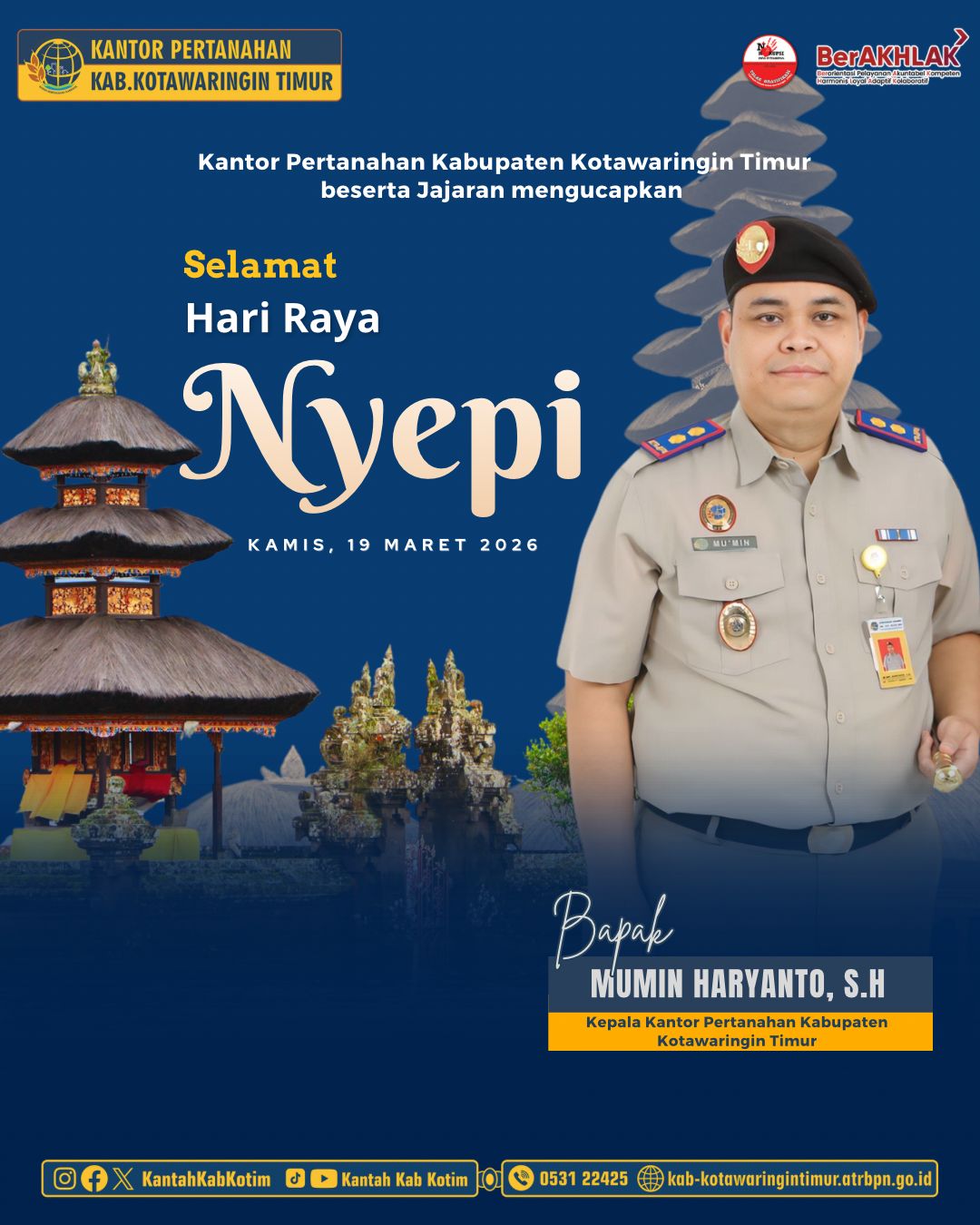 Segenap jajaran Kantor Pertanahan Kabupaten Kotawaringin Timur mengucapkan Selamat Melaksanakan Persembahyangan Nyepi Tahun Baru Saka 1948 untuk seluruh umat Hindu yang merayakannya.