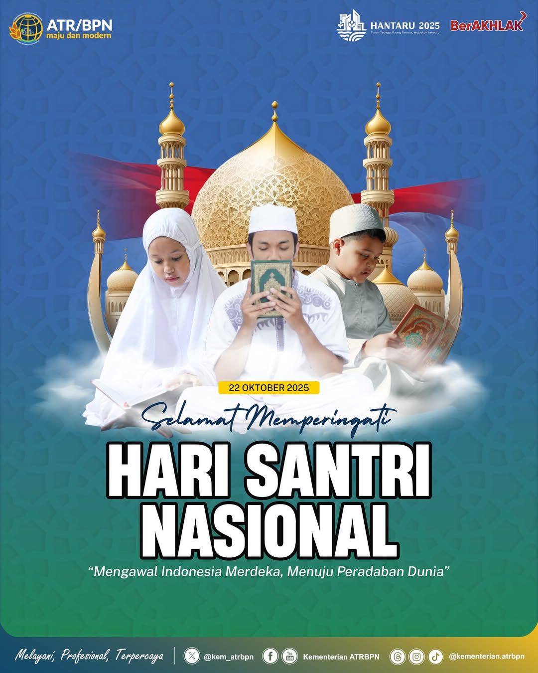 Segenap jajaran Kementerian ATR/BPN mengucapkan Selamat Hari Santri Nasional 2025.