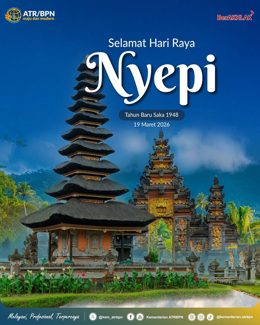 Segenap jajaran Kementerian ATR/BPN mengucapkan Selamat Melaksanakan Persembahyangan Nyepi Tahun Baru Saka 1948 untuk seluruh umat Hindu yang merayakannya.