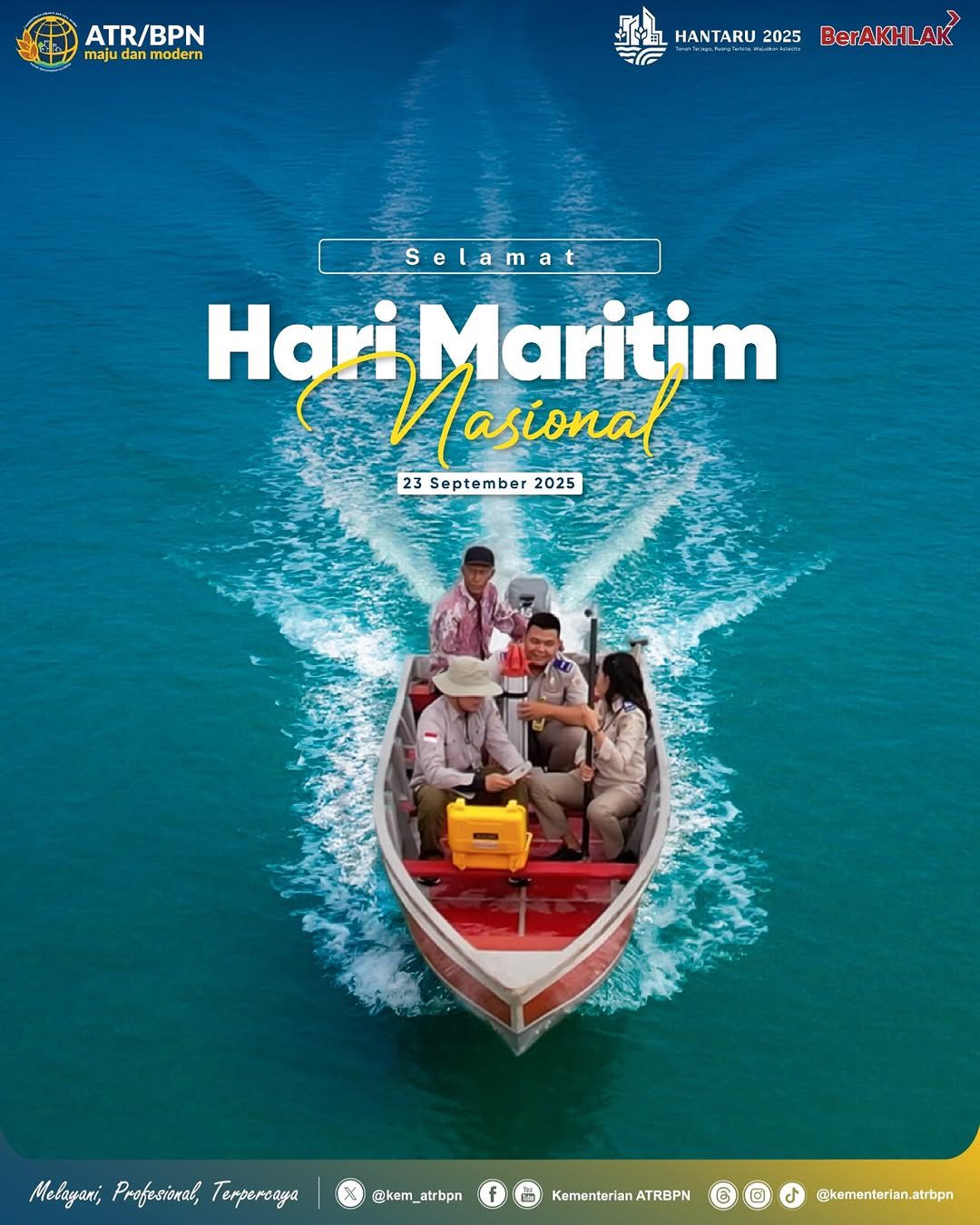 Segenap jajaran Kementerian ATR/BPN mengucapkan Selamat Memperingati Hari Maritim Nasional 2025.