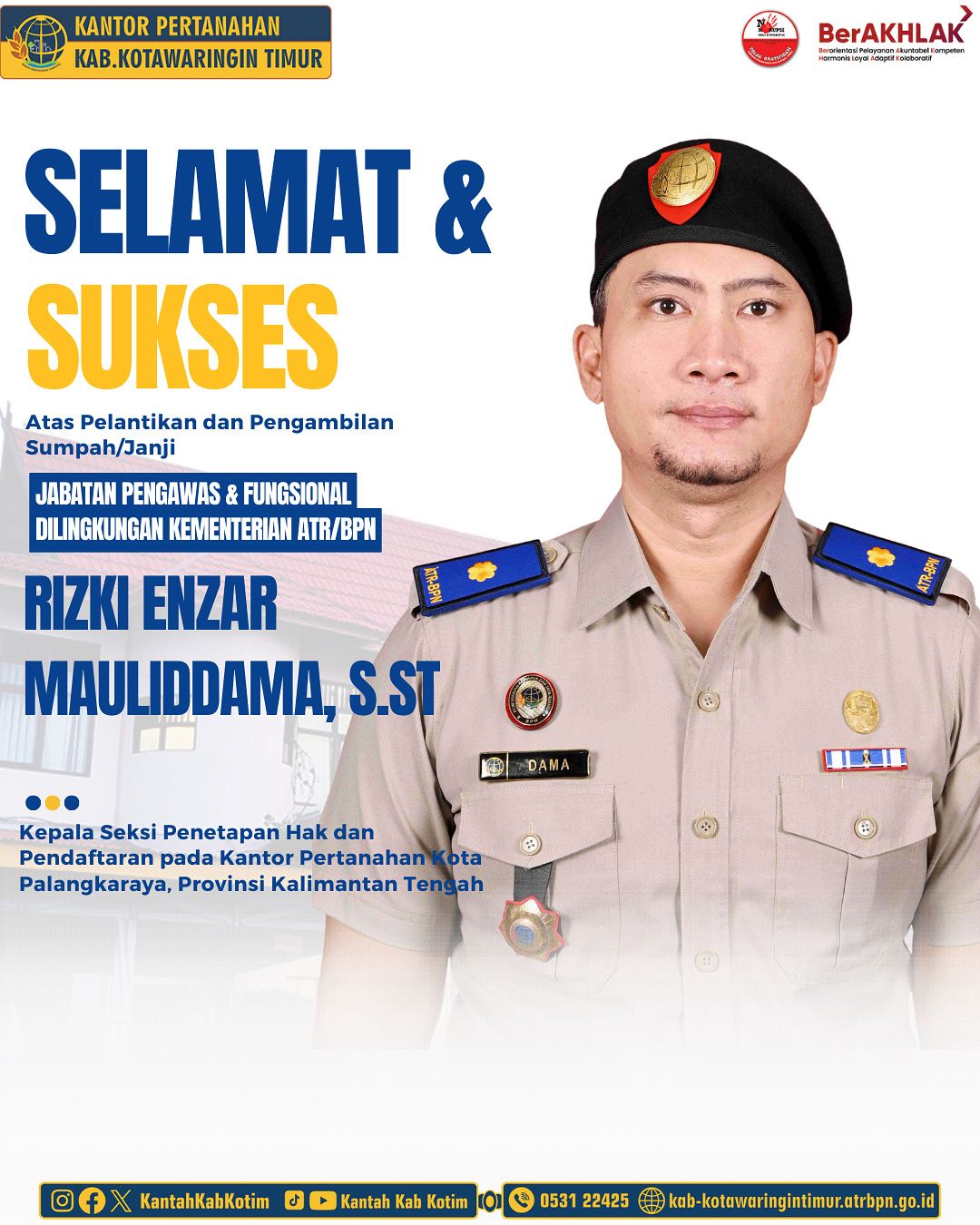 Segenap keluarga besar Kantor Pertanahan Kabupaten Kotawaringin Timur mengucapkan Selamat dan Sukses atas pelantikan